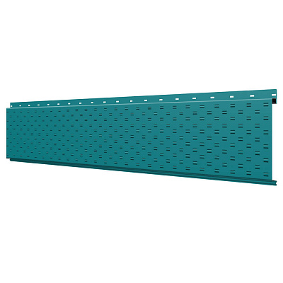 Линеарная потолочно-стеновая панель с ПЕРФОРАЦИЕЙ для вентиляции цвет RAL5021 Морская Волна применяется в качестве софитов для подшивы крыши, наружной и внутренней отделки потолков, стен, фронтонов фасада дома в Москве.