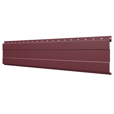 Линеарная потолочно-стеновая панель с ПОЛОСОЙ усиленная цвет RAL3005 Красное Вино Стальной Бархат применяется в качестве софитов для подшивы крыши, наружной и внутренней отделки потолков, стен, фронтонов фасада дома в Москве.